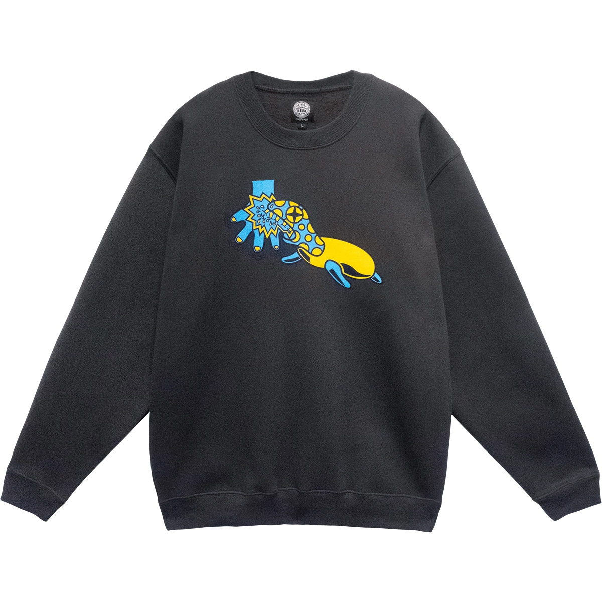 Woven label on the back.